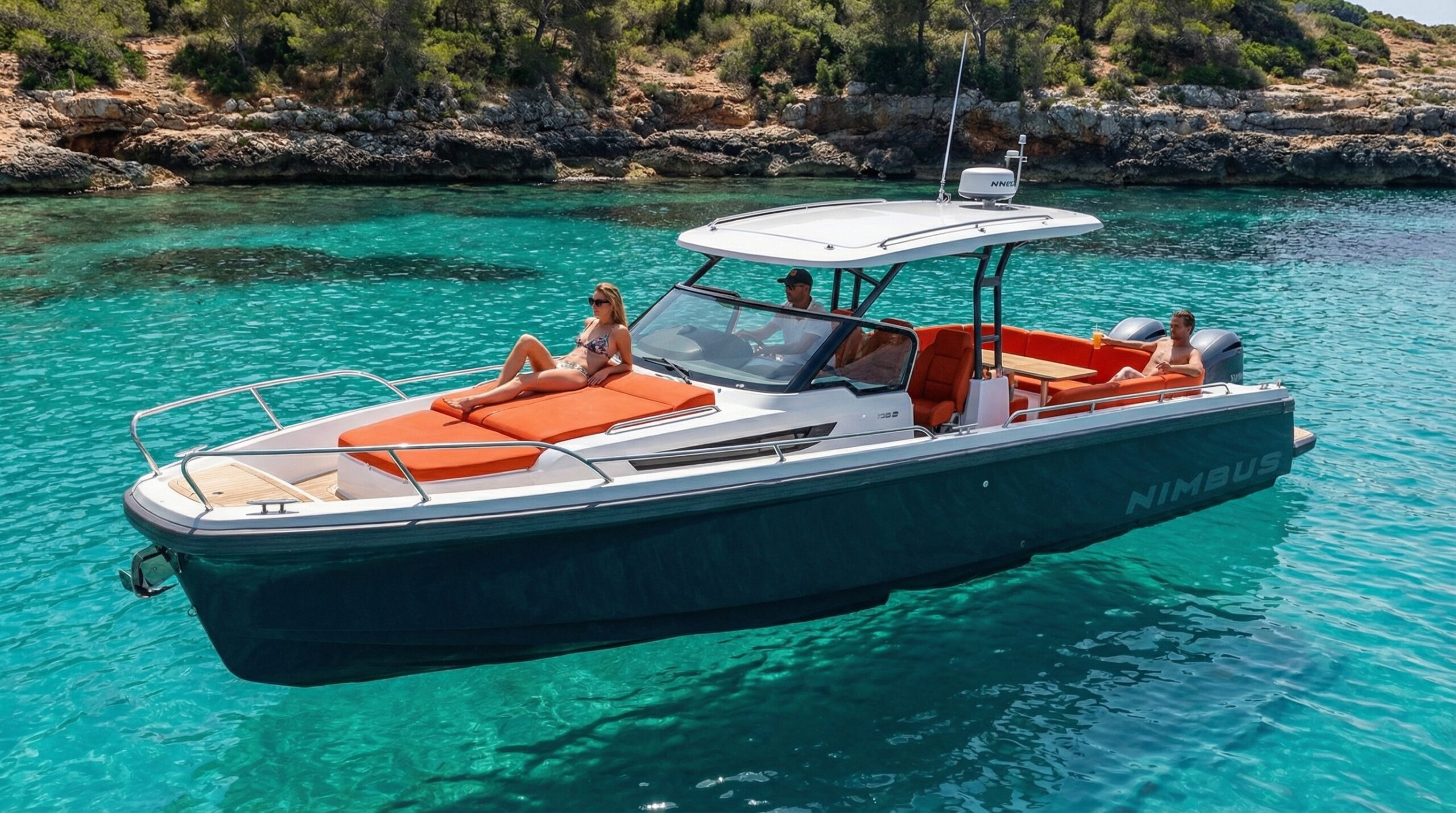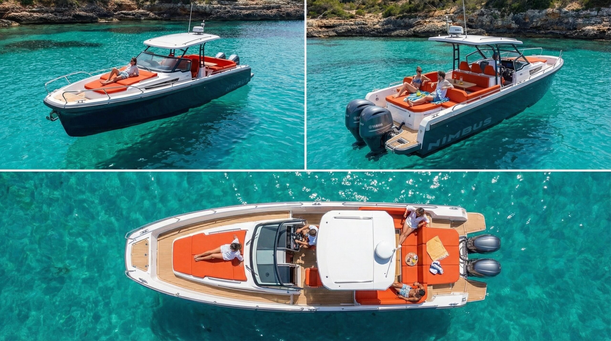 The Nimbus W11 is a luxurious 40ft weekend cruiser, combining sporty performance with premium comfort. The versatile open deck provides the ultimate space for socialising with family and friends, entertaining, dining and the walkaround deck with open side balcony creates an additional feeling of space and allows guests to enjoy a beach club feel when on anchor. The interior layout provides two spacious and comfortable cabins and a fully equipped bathroom.
