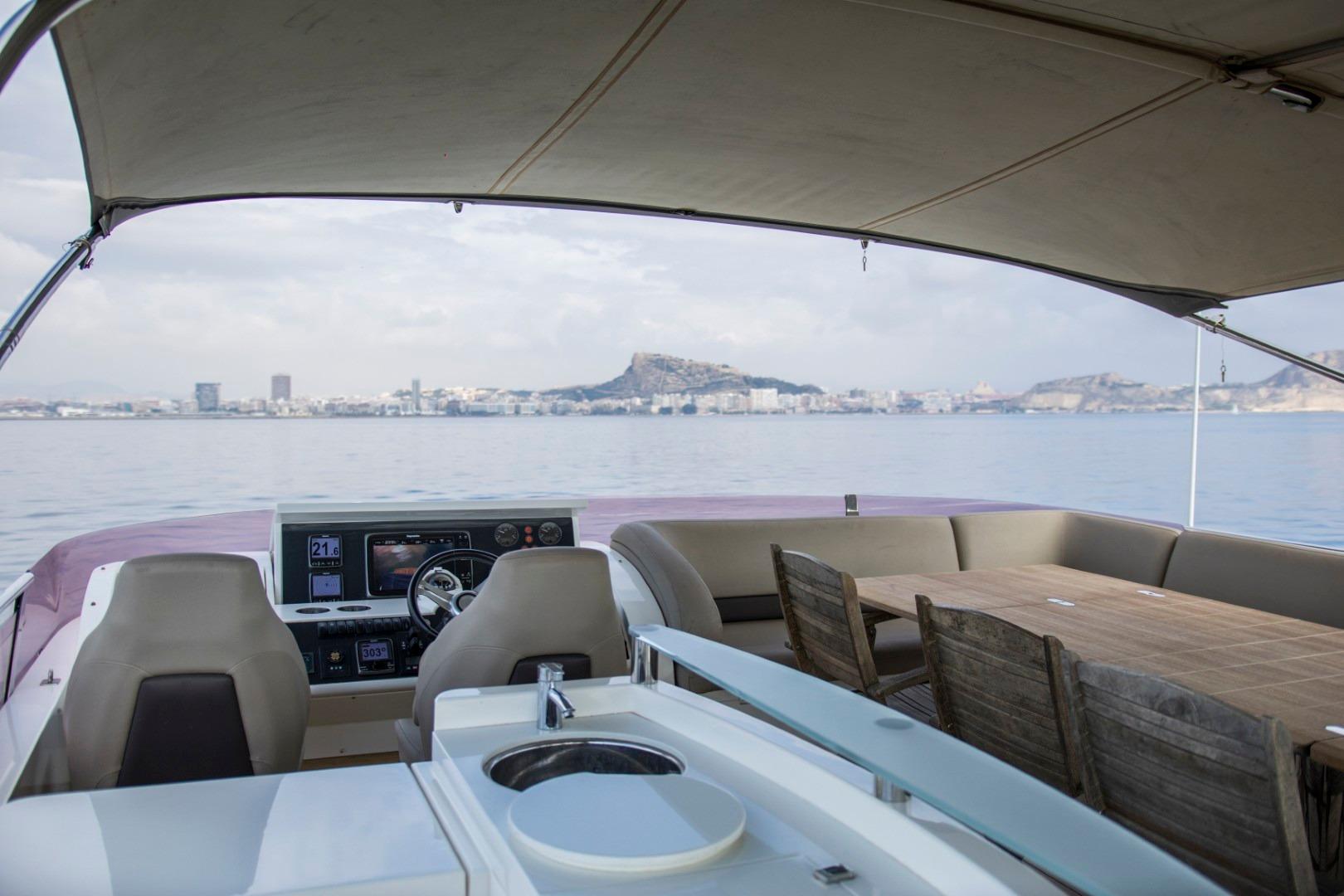 - Large flybridge lounge area