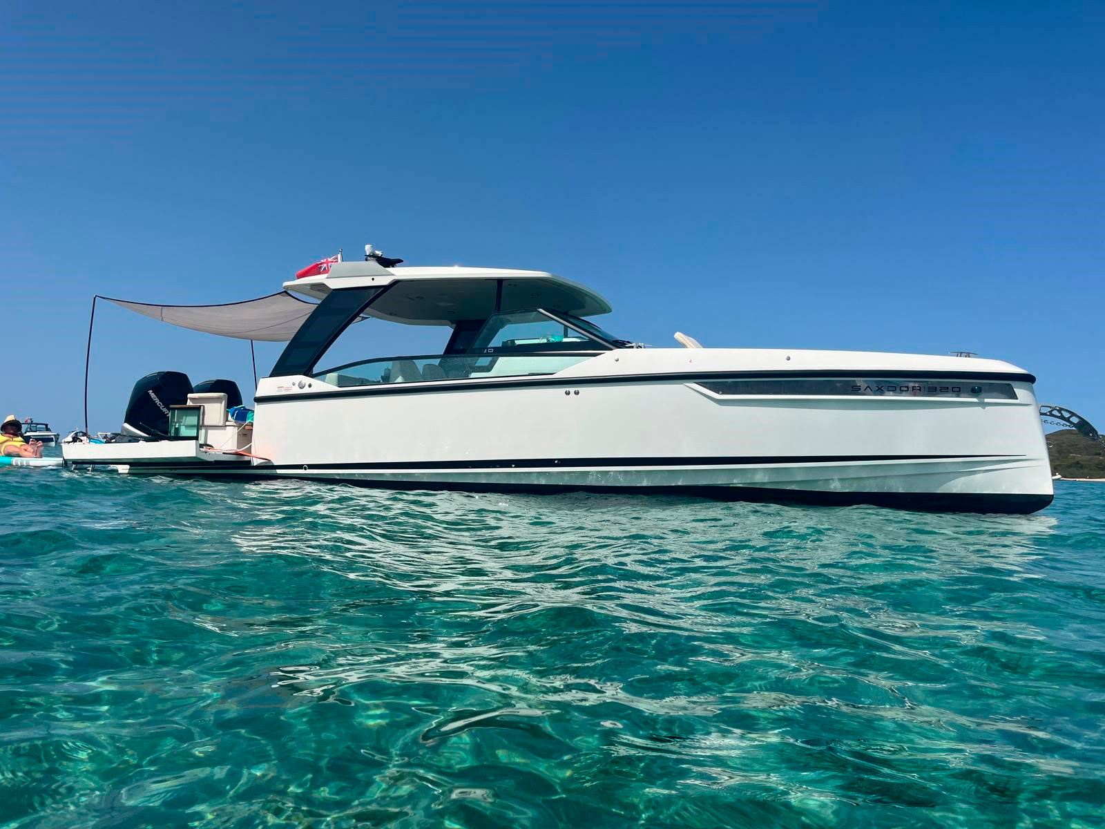 The Saxdor 320 GTO is a high-performance, award-winning sportsboat that combines Scandinavian design with Italian styling.