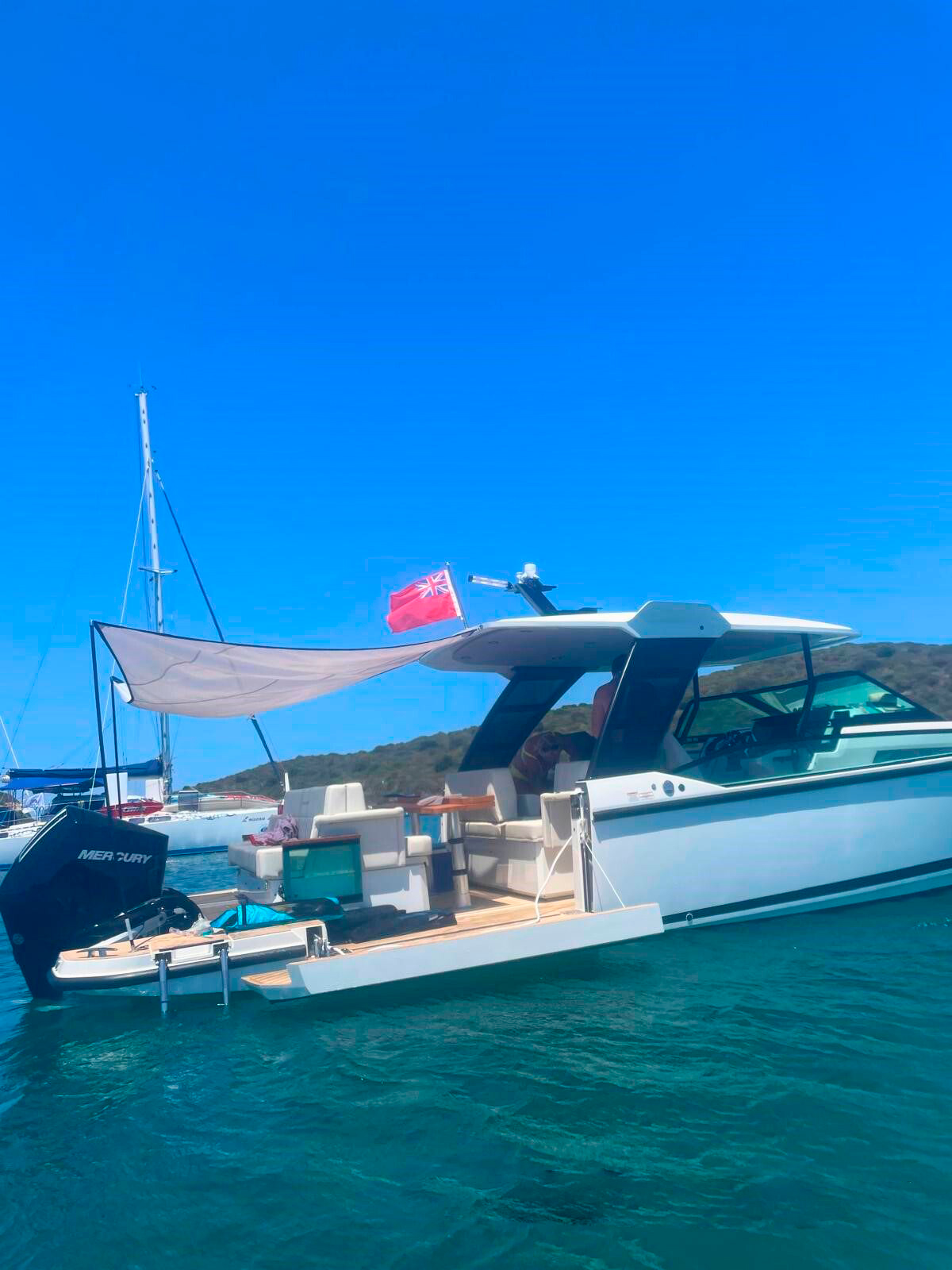 This 2024 model is fitted with twin 225hp Mercury V6 outboards with only 27 hours, delivering impressive performance. Fully equipped throughout, this boat has all of the most sought-after options including bow thruster, water ski pole, Fusion audio system, fresh water system and more.