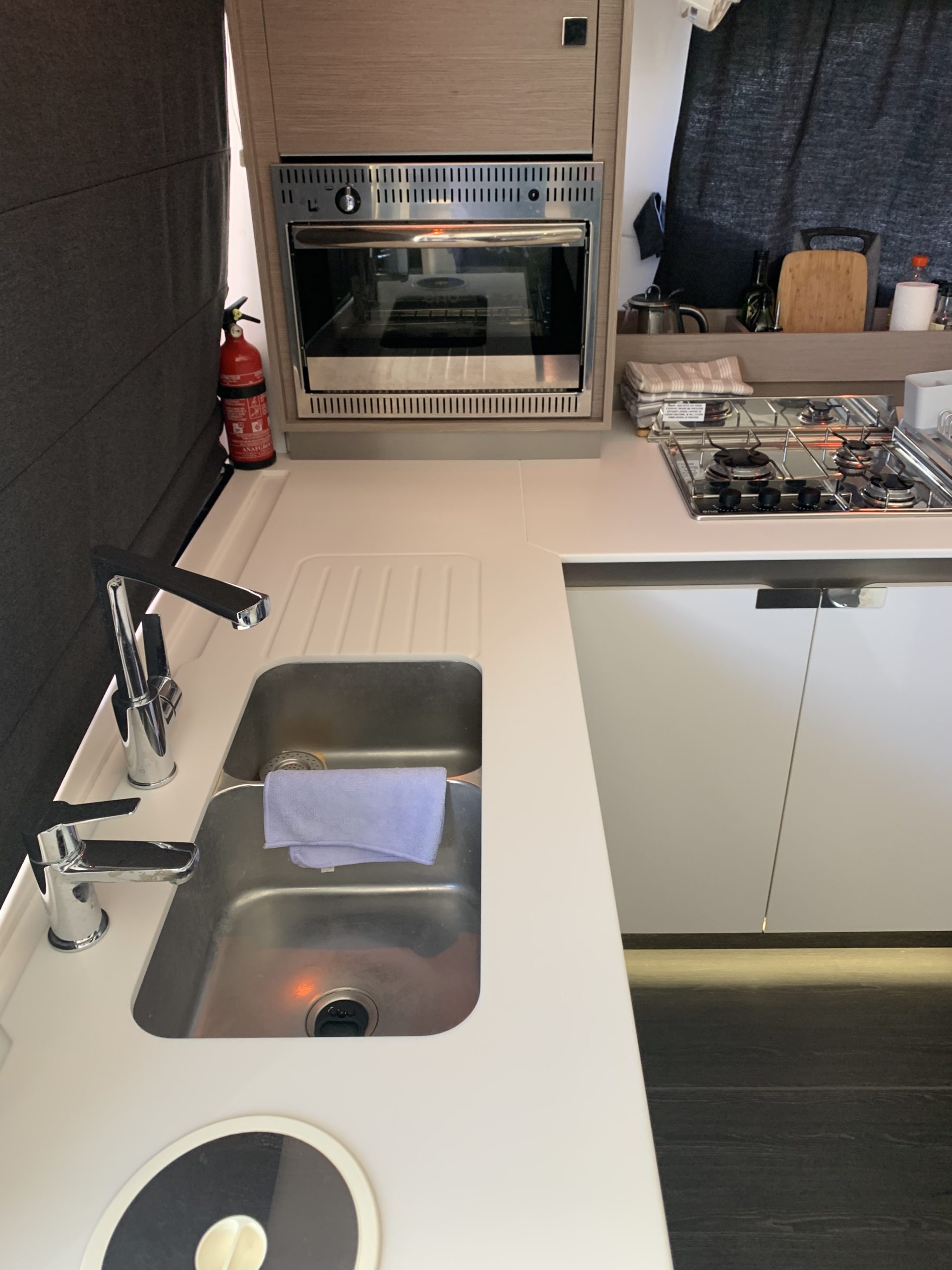 - Fully equipped galley with gas hob, double sink, oven and fridge