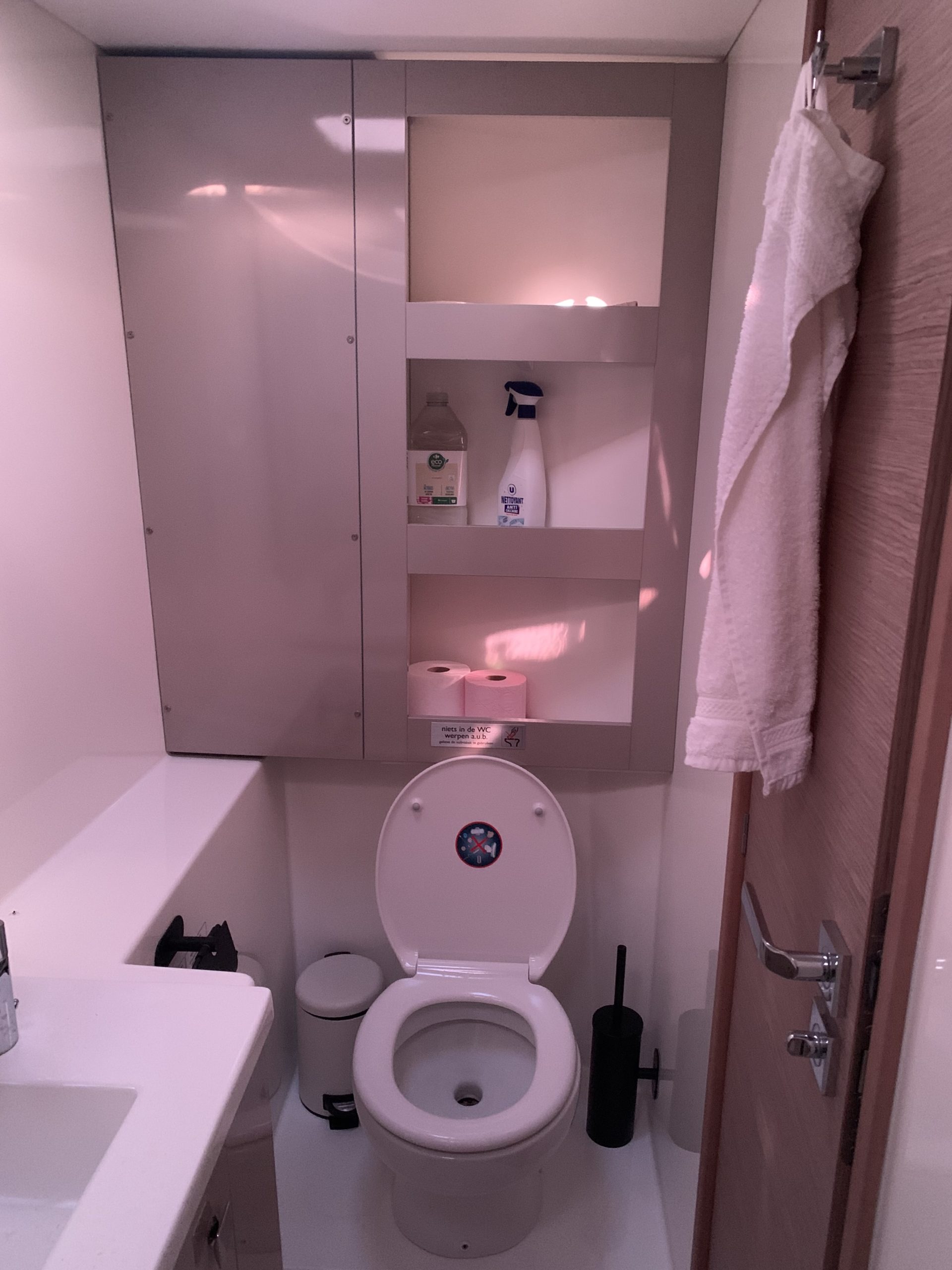 - Port hull with two double guest cabins with en-suite