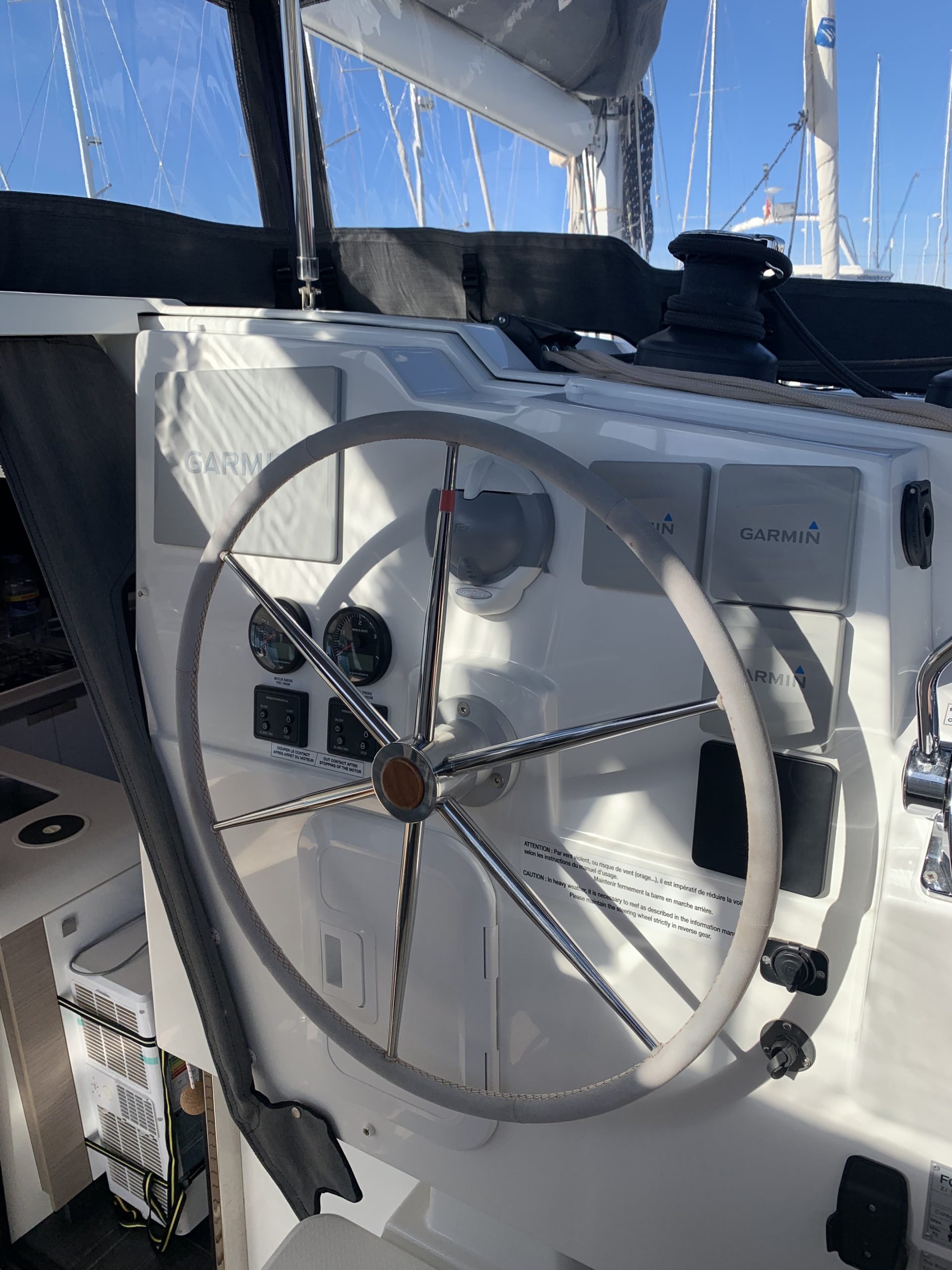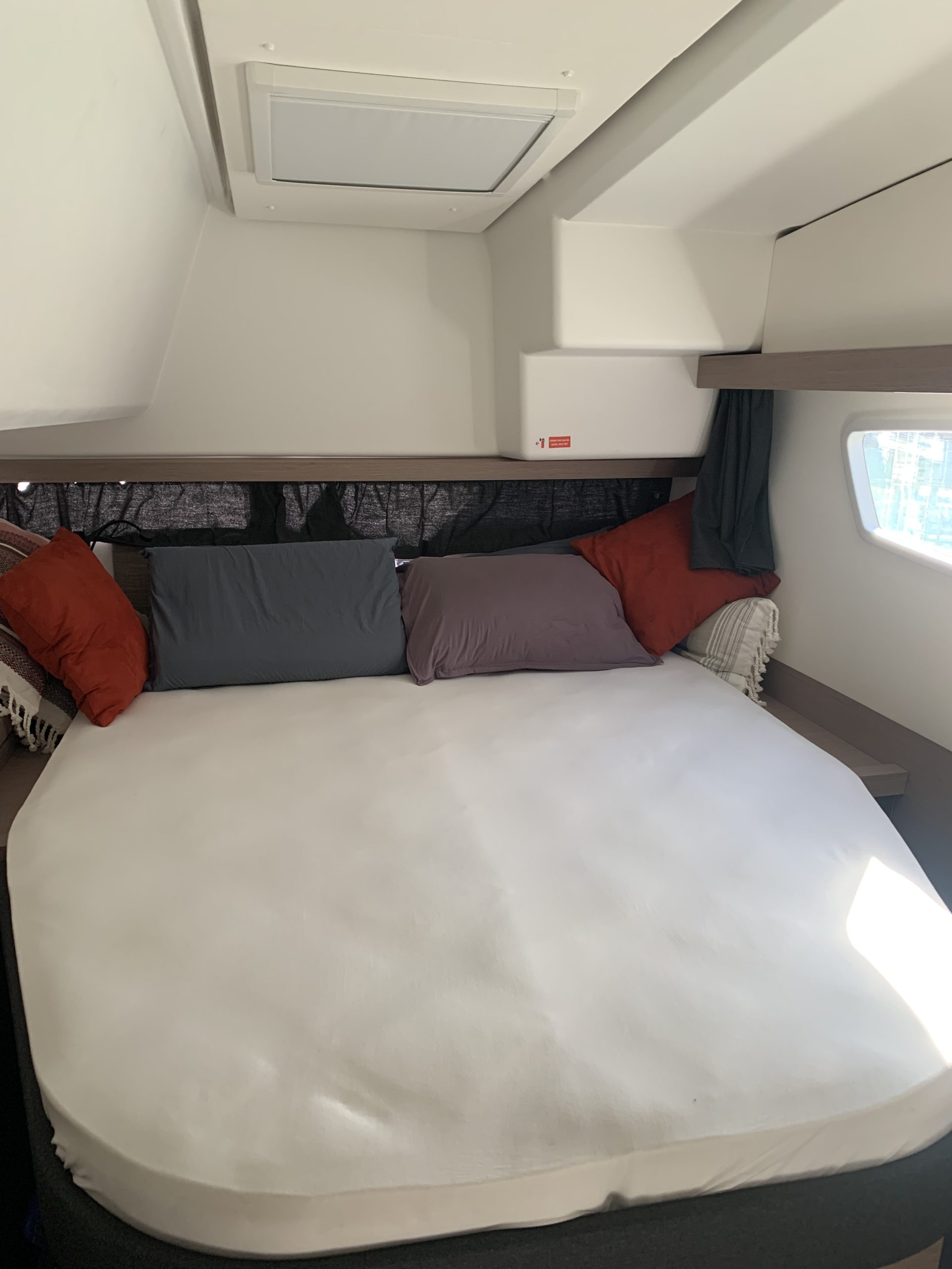 Inside, this catamaran offers exceptional volume that makes every room feel like a luxury yacht. The Maestro version features spacious cabins, comfortable beds, and elegant light wood finishes that add warmth and sophistication. The owner’s suite-style master cabin is a private retreat with ample storage, natural lighting, and optimal ventilation.