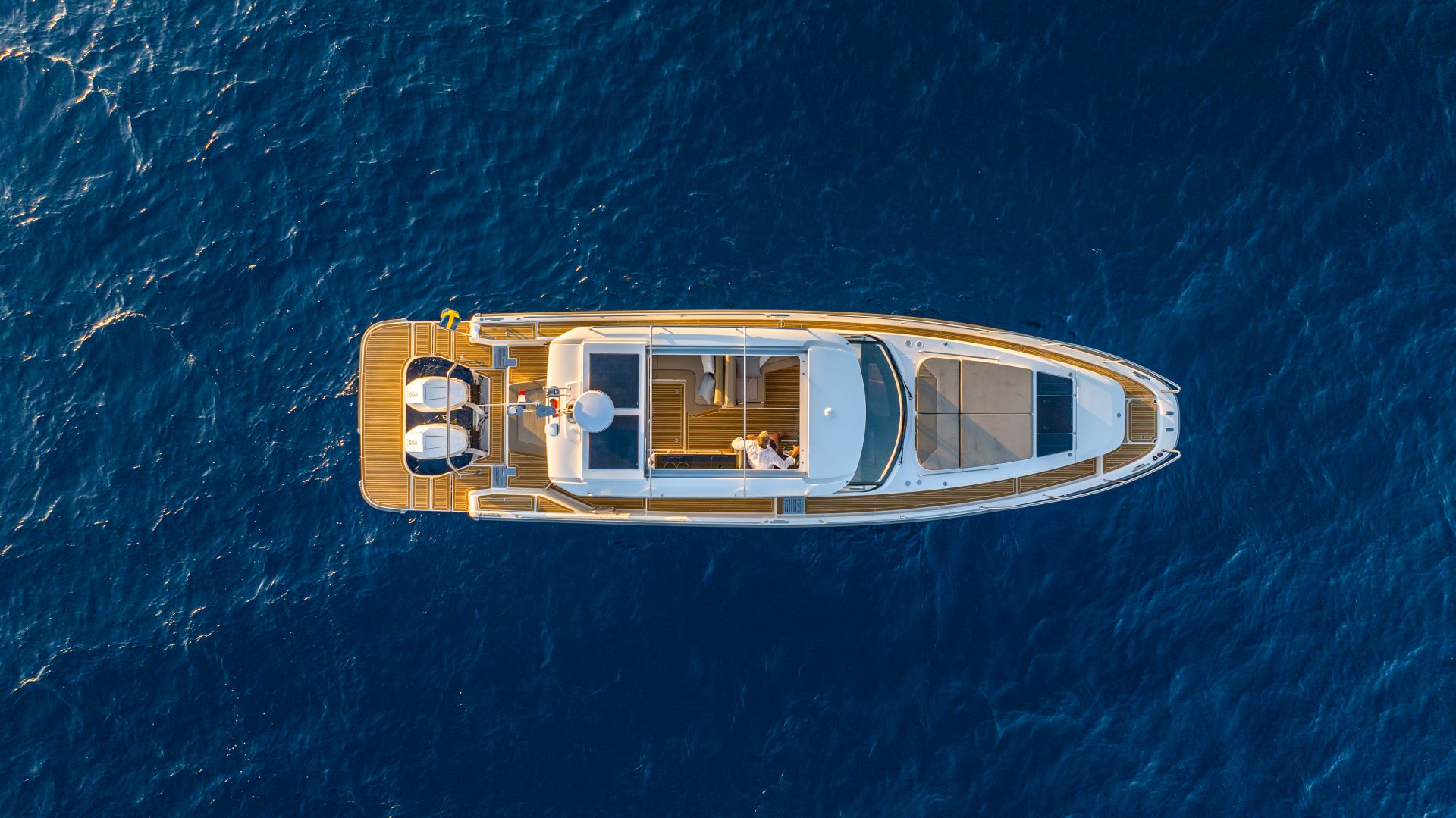 - Teak deck including hydraulic bathing platform