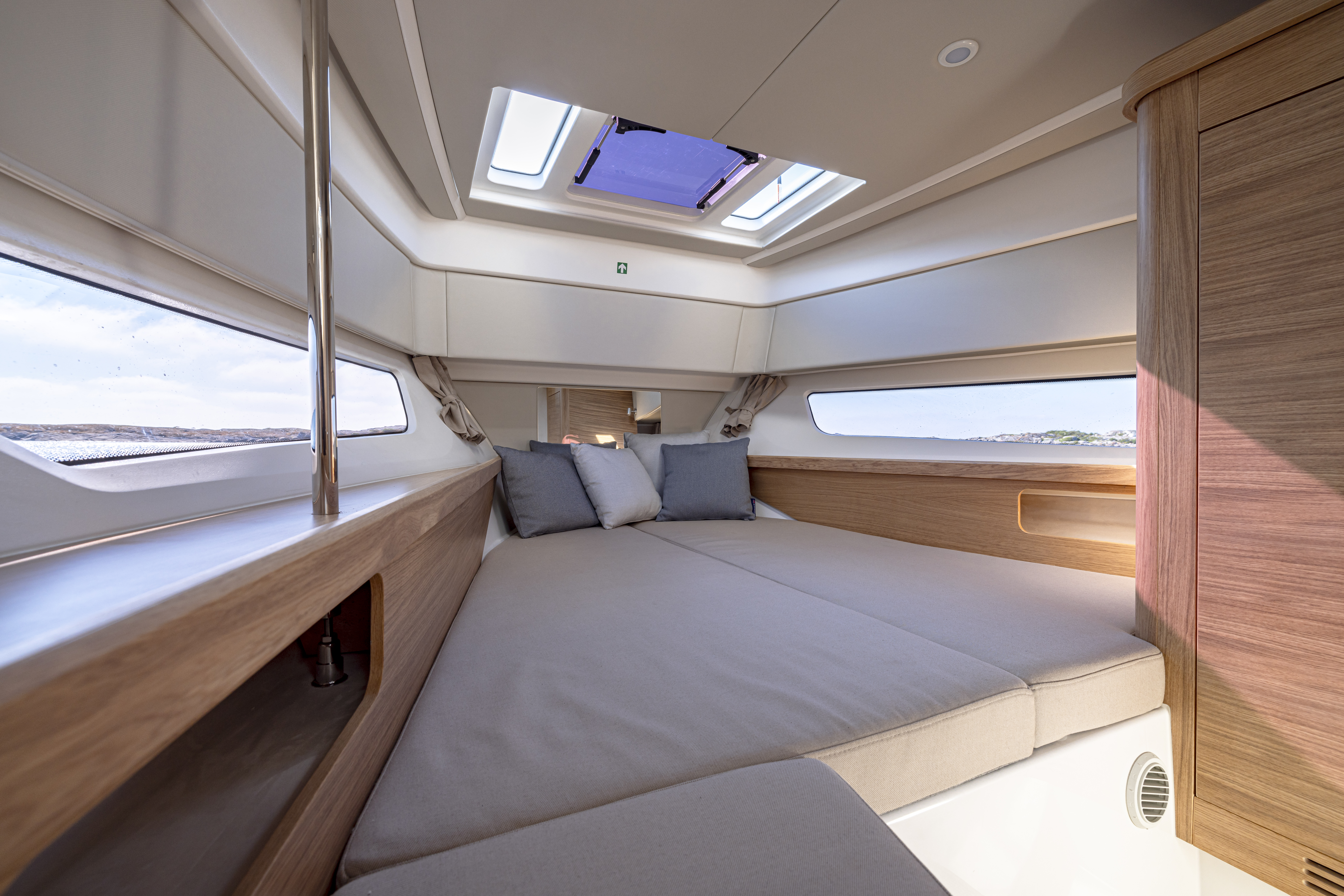 - Extra portlights to mid-cabin including curtains