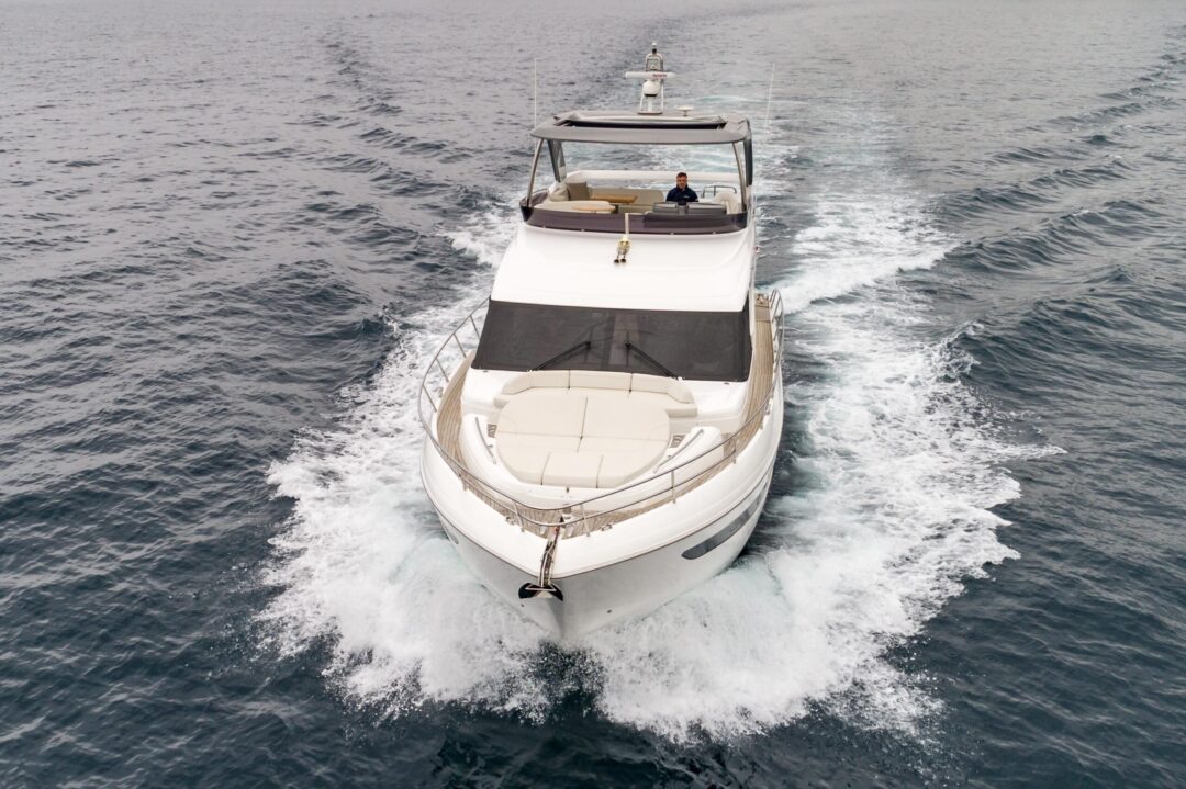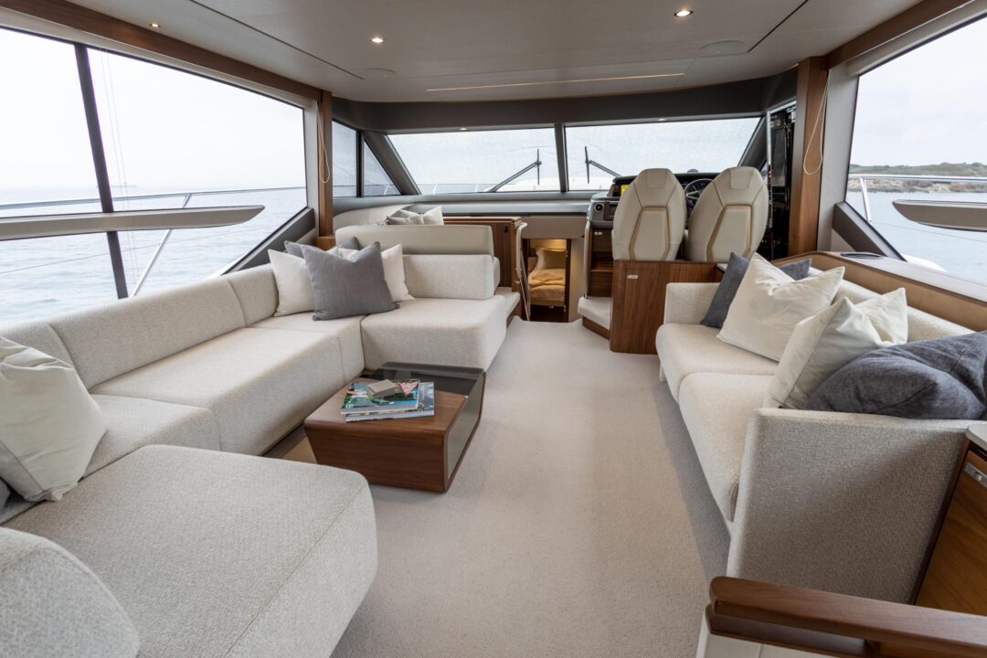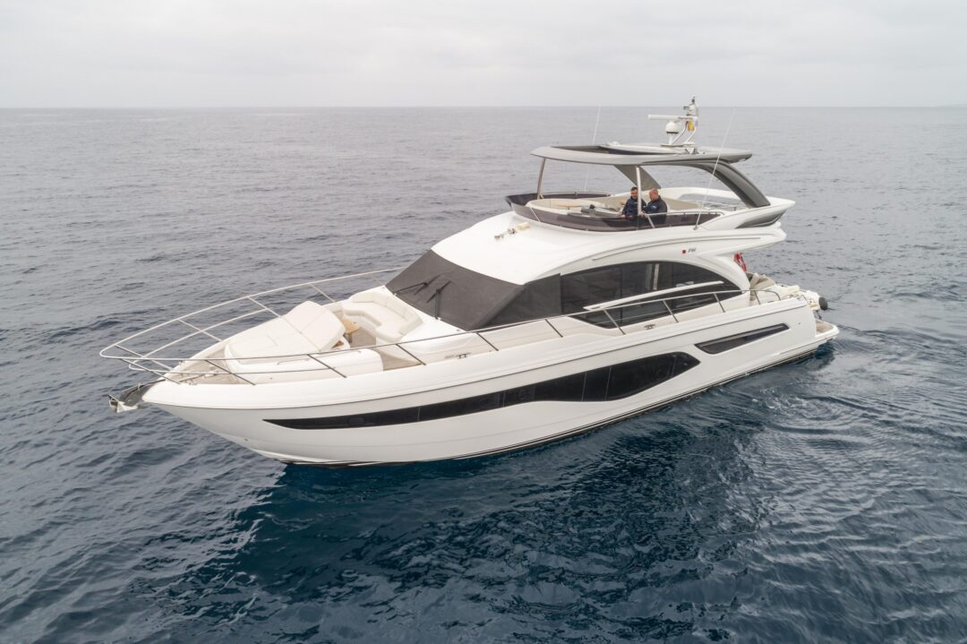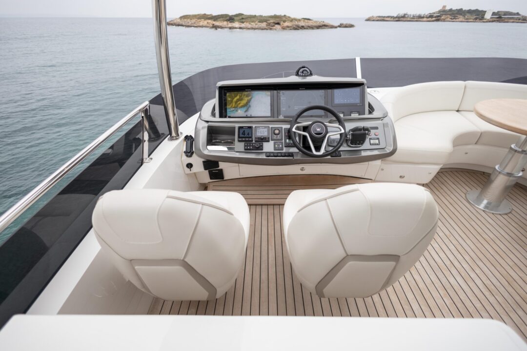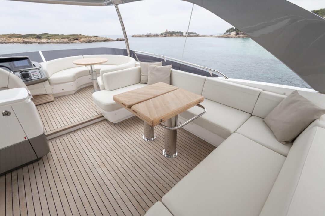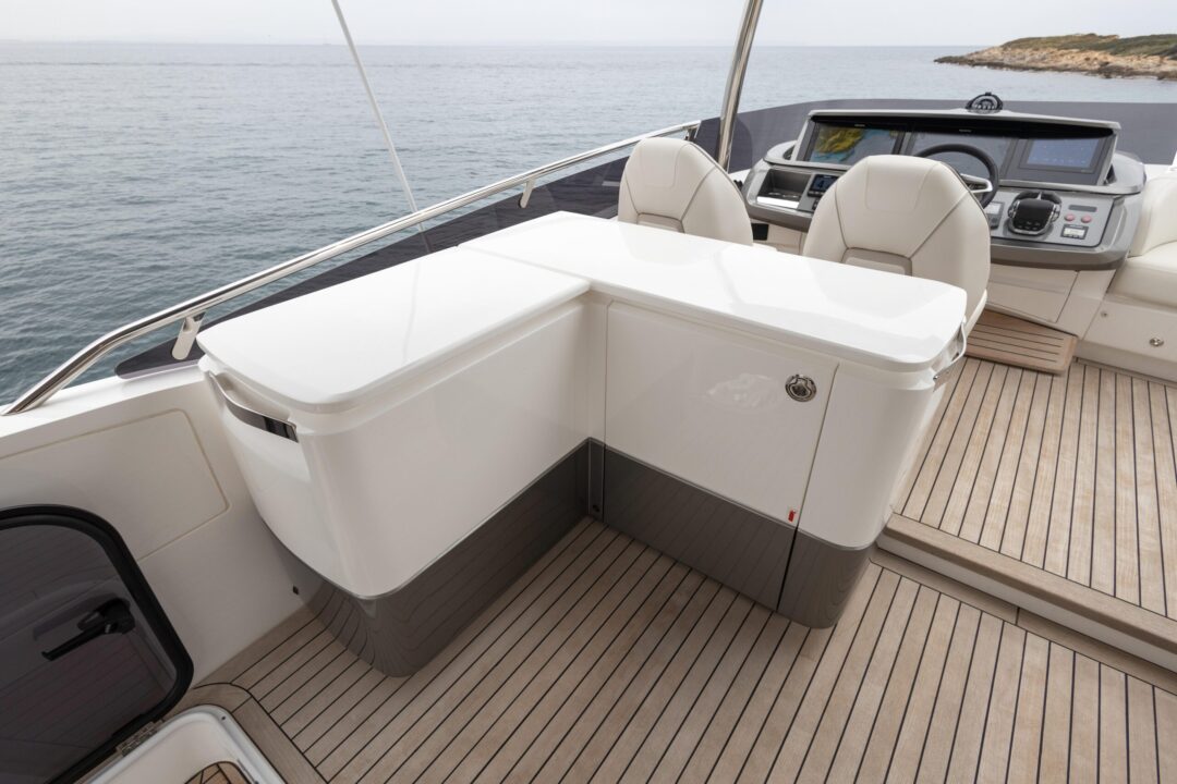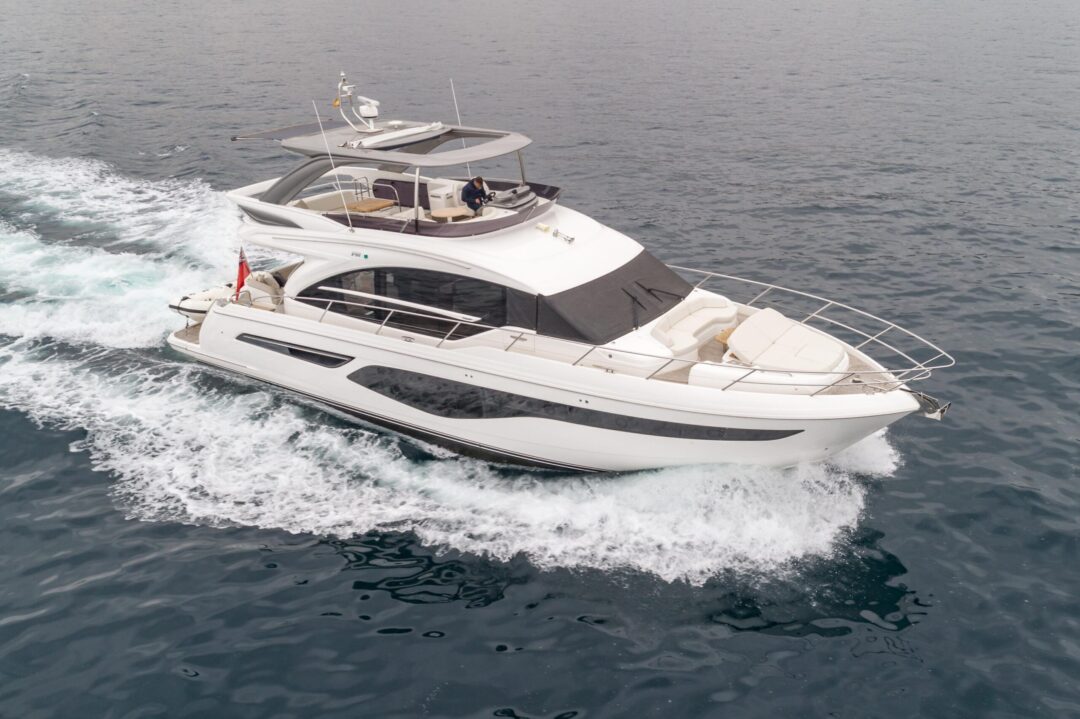 The all-new Princess 62 encapsulates our meticulous design ethos and all the benefits of the latest infusion technology, enabling the inclusion of features normally possible only on much larger craft. Her flybridge inspires relaxation with a large dining area, a sunpad aft and a unique circular forward seating area that can be converted into an additional sunpad. Boasting a walkthrough foredeck entertaining space and a hydraulic bathing platform as standard she is an ingenious and compelling addition to our Flybridge range.