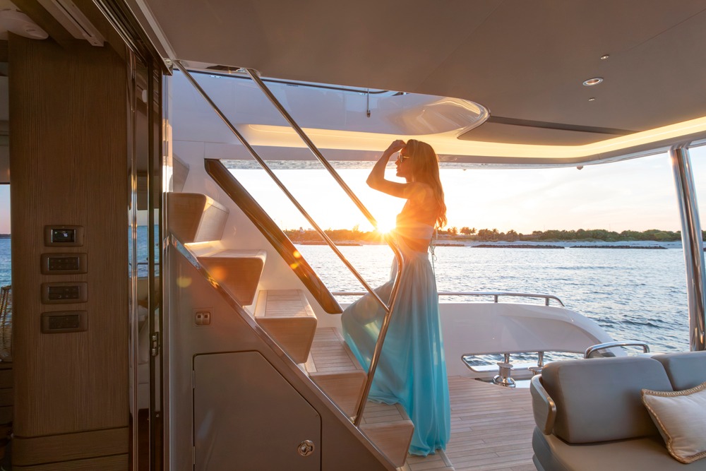 The all-new Y85 is a triumph of contemporary design. Her elegant sweeping profile houses an interior sanctuary that resets the benchmark for modern living. Her flybridge is an irresistible invitation to al fresco entertainment with a large dining area opposite a well-equipped wet bar further complemented by a large aft sunpad. With twin MAN V12 engines propelling her to a top speed of 33 knots, she flies past her contemporaries without looking back. An expansive single-level main deck provides ample entertaining space with a flexible galley arrangement. Three separate seating areas ensure the utmost privacy for guests with the crew able to move discretely around the yacht. Below deck, up to eight guests are accommodated across four beautifully appointed en suite cabins. Amidships, the full beam master suite is a champion of spacial design, whilst the en suite VIP cabin, forward, boasts a large double bed and walk-in-wardrobe. Furthermore, one double and one twin cabin (convertible into a double) complete her spacious accommodation. Unmissable, the all-new Y85 is unmistakably Princess.