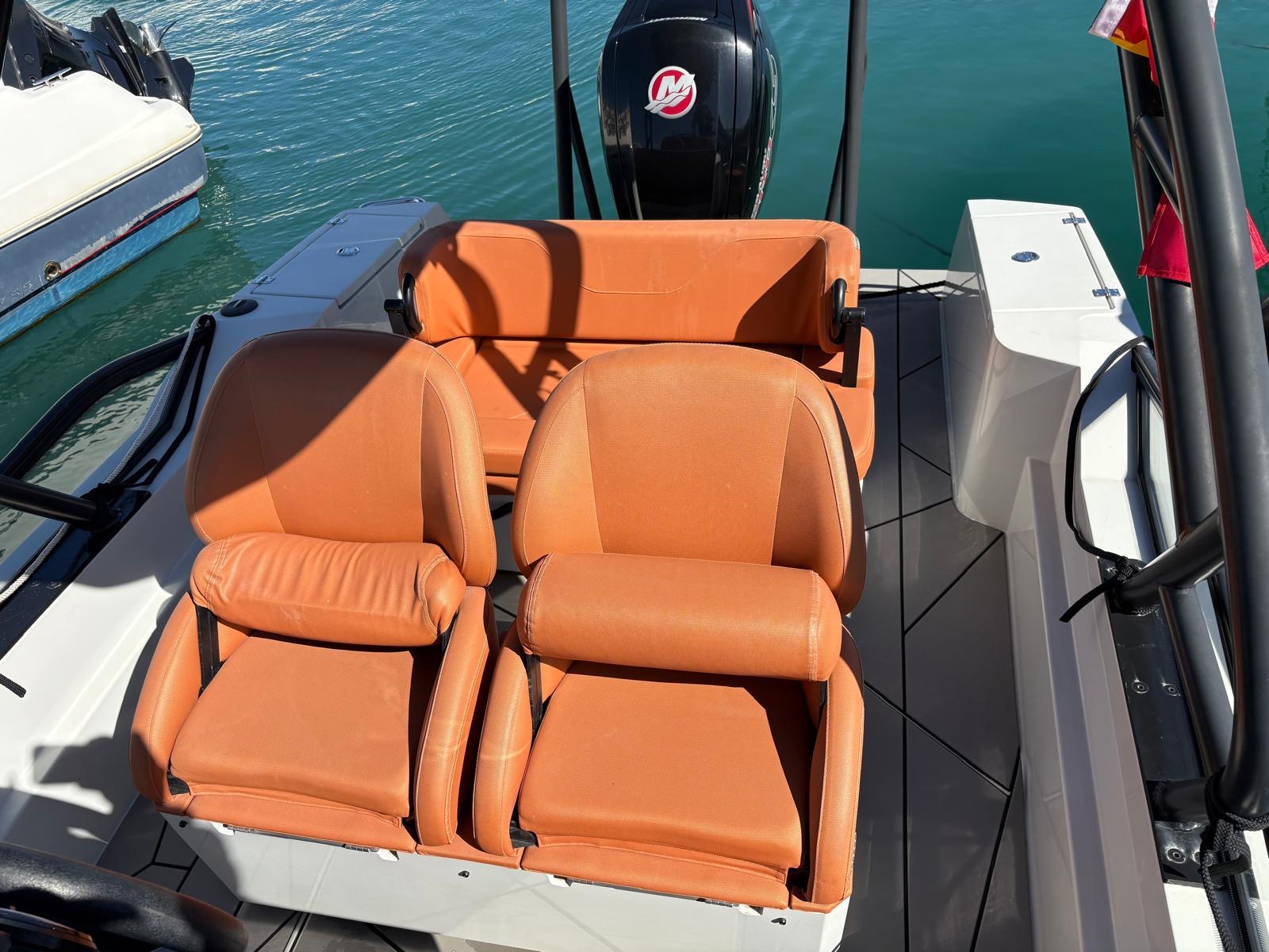 This model was first launched in 2022 and is fitted with a powerful 115hp Mercury outboard that has just 127 hours of use. It has the popular twin helm seat with aft sofa seating layout together with two additional seats in the bow. It is finished with the optional T-top and soft deck flooring as well has having a full list of extras such as Simrad GO9, Fusion stereo and much more. This boat has also been main dealer maintained since new.