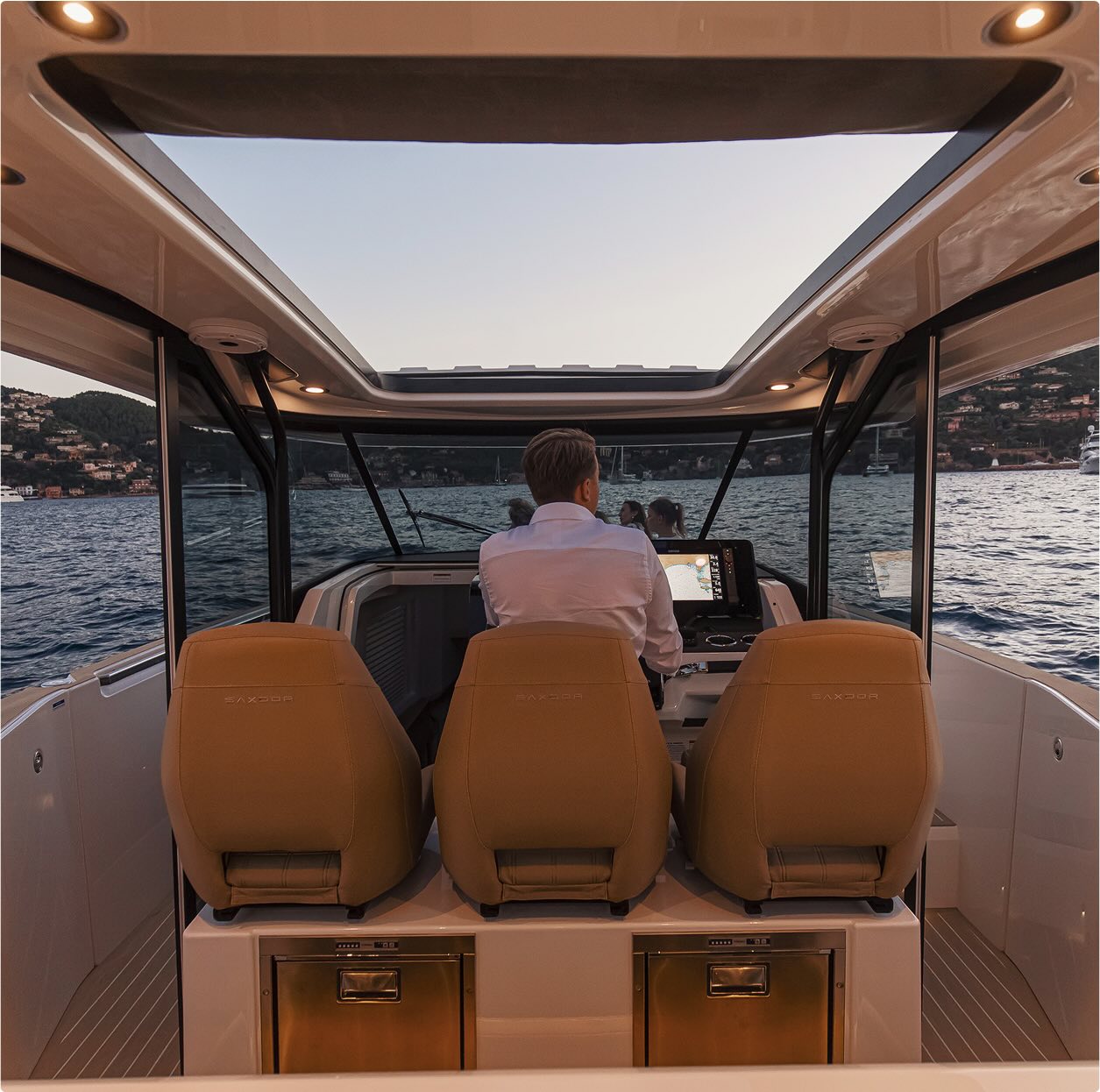 The Saxdor 400 GTS is the purest expression of open boating in the Saxdor 400 series. With its walkaround layout, sleek glass shielding around the helm, and signature folding terraces that expand your connection to the water, it redefines the open-air experience. Modular seating and convertible sunbeds seamlessly adapt to your plans, creating an effortless flow for lounging, socializing, or thrilling rides. Built on the same agile twin-stepped hull as its siblings, the GTS delivers a dynamic, responsive drive, while ensuring everyday usability with thoughtful protection and space solutions.