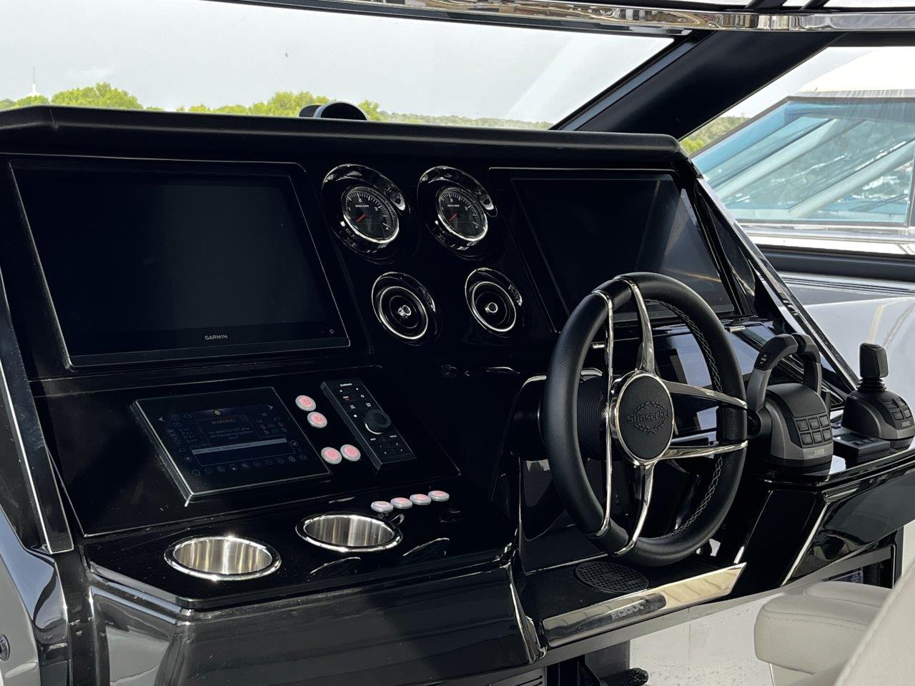 - Centre-line triple helm with adjustable helm seats and wireless charging pads
