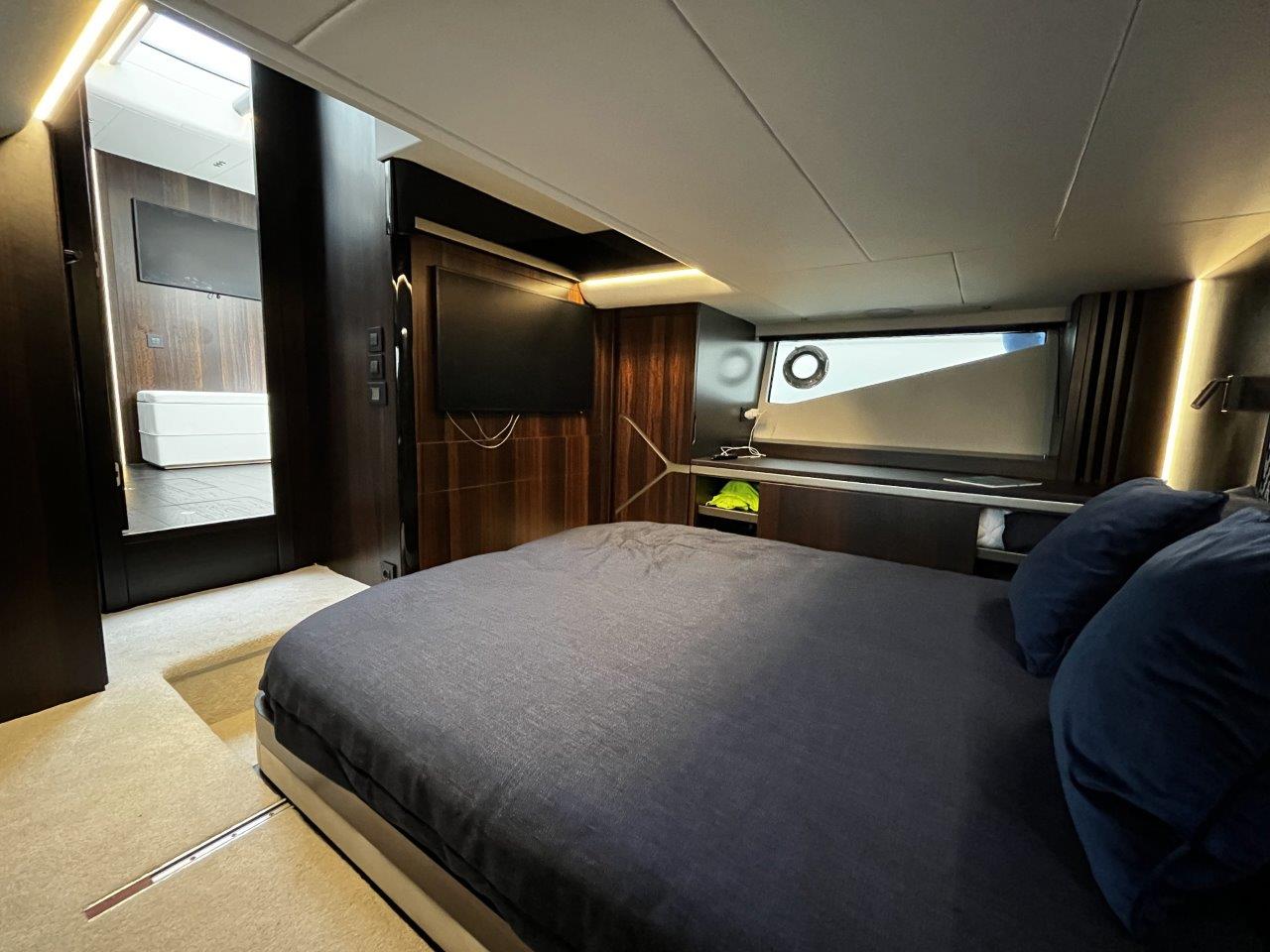- Owner’s cabin aft with sliding berth to create either a double or twin beds with an en-suite bathroom with separate shower