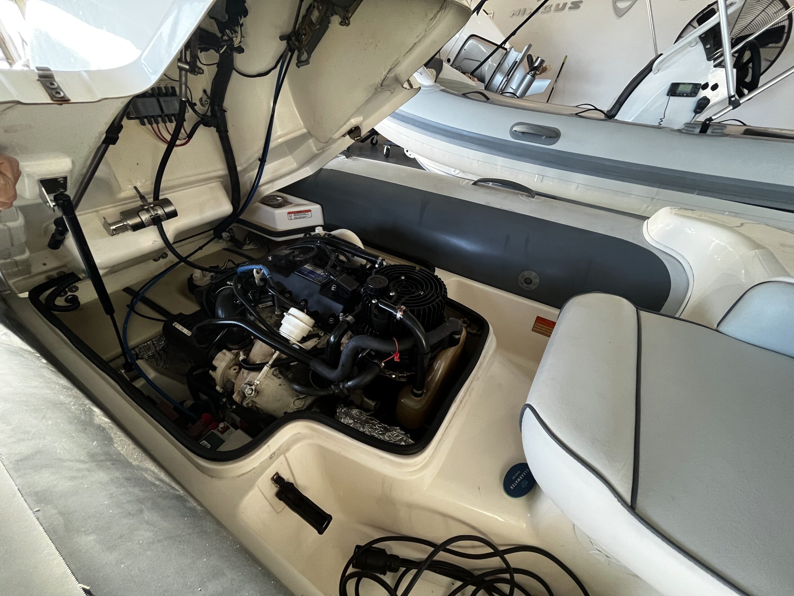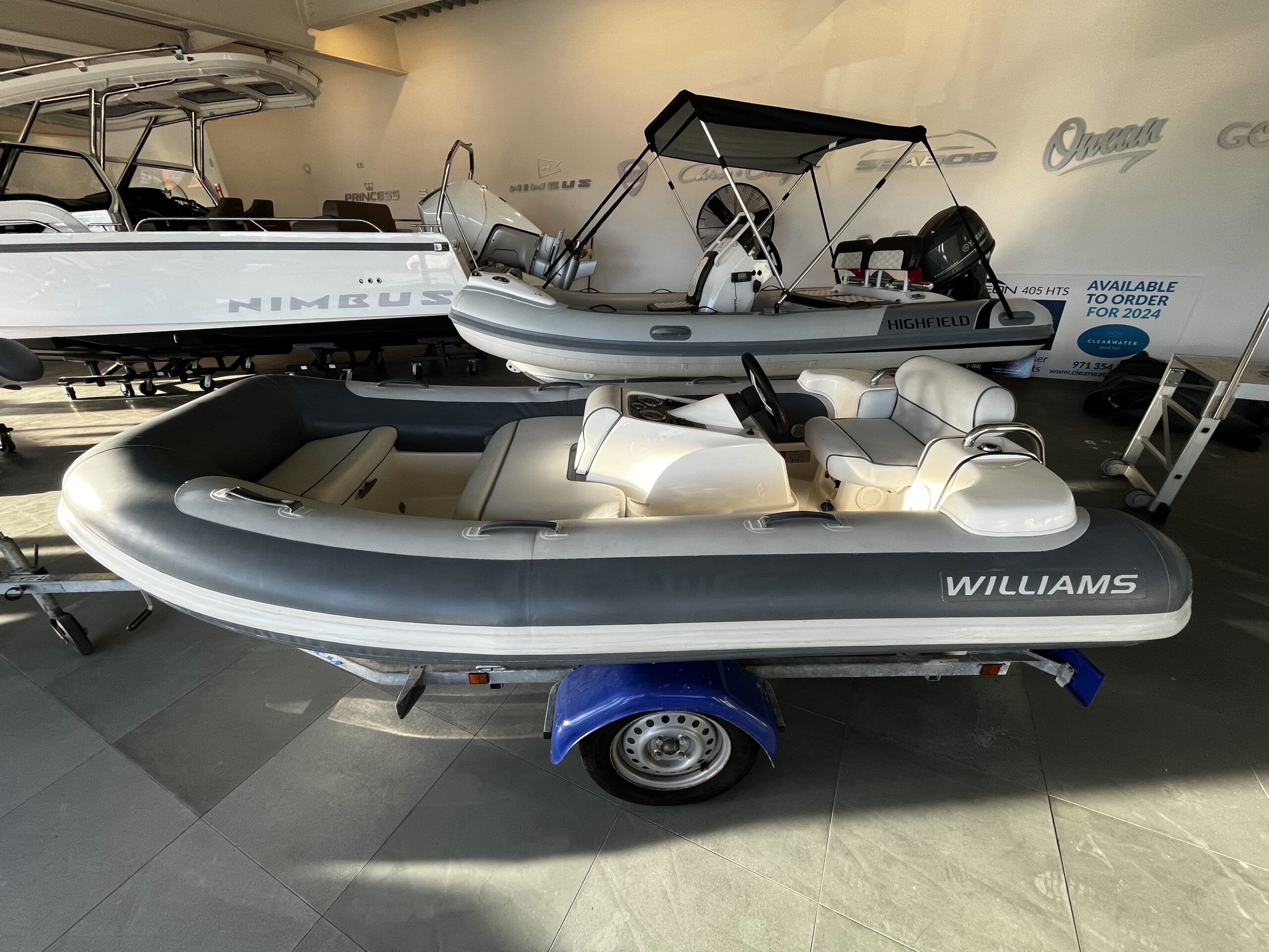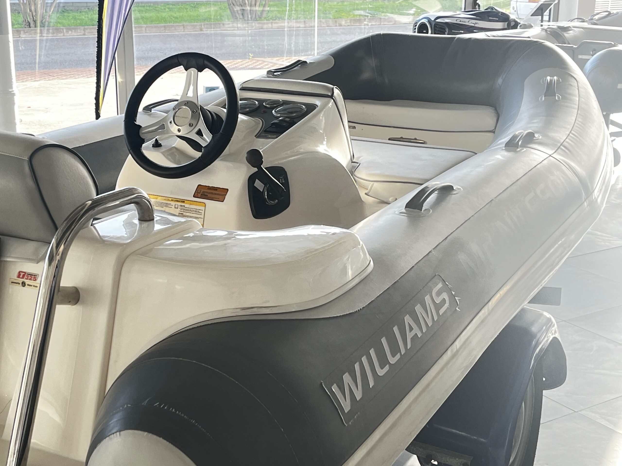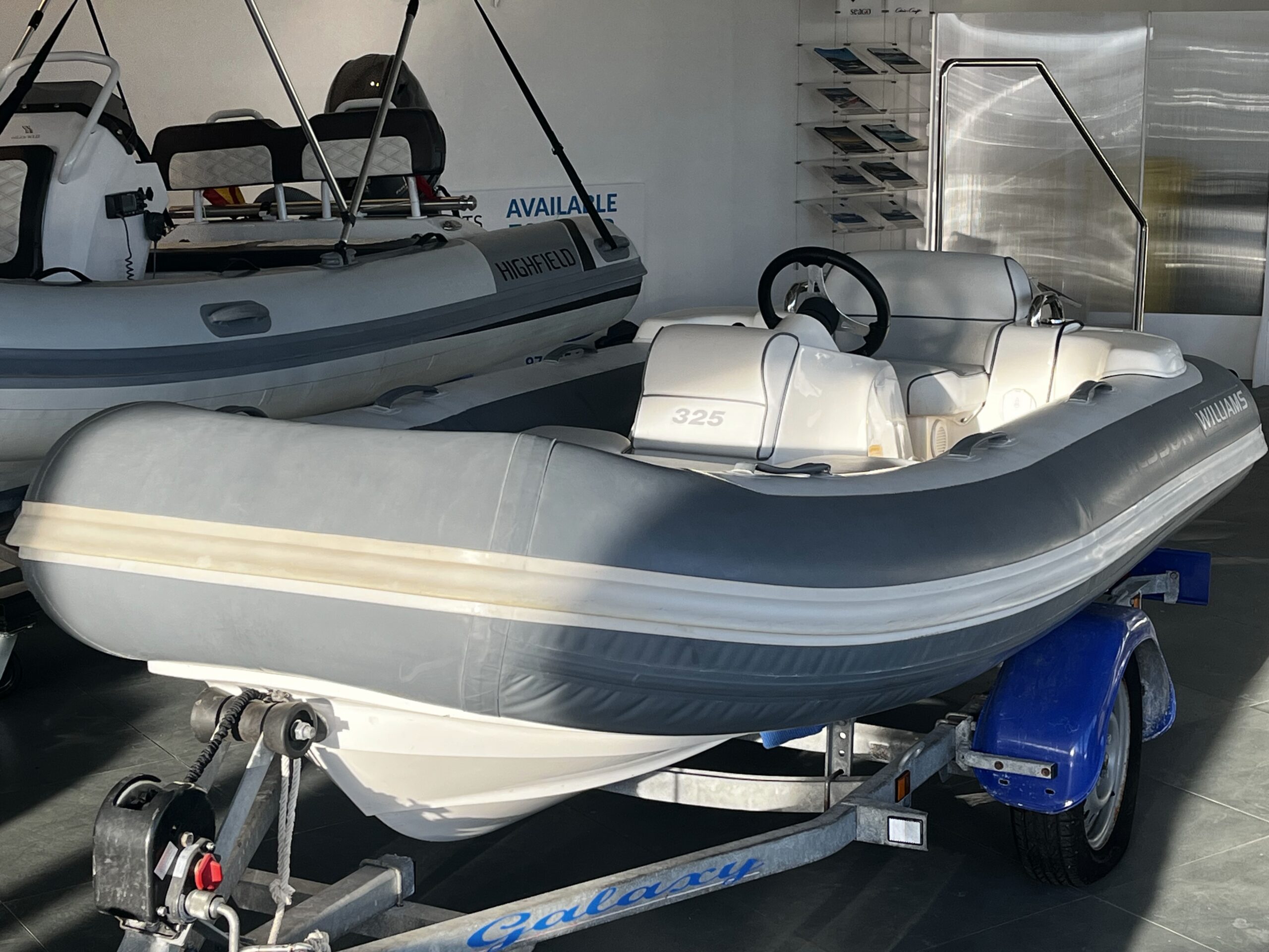 This 2013 model Williams Turbojet 325 is a high-performance jet rib, ideal for use as runabout or tender to a larger vessel. The compact design allows the 325 to fit into most tender garages or on a bathing platform, whilst comfortably carrying 4 people. Known for its excellent acceleration, good top speeds, great handling and shallow draft, the 325 is also a fantastic option for water-sports and beach-hopping.