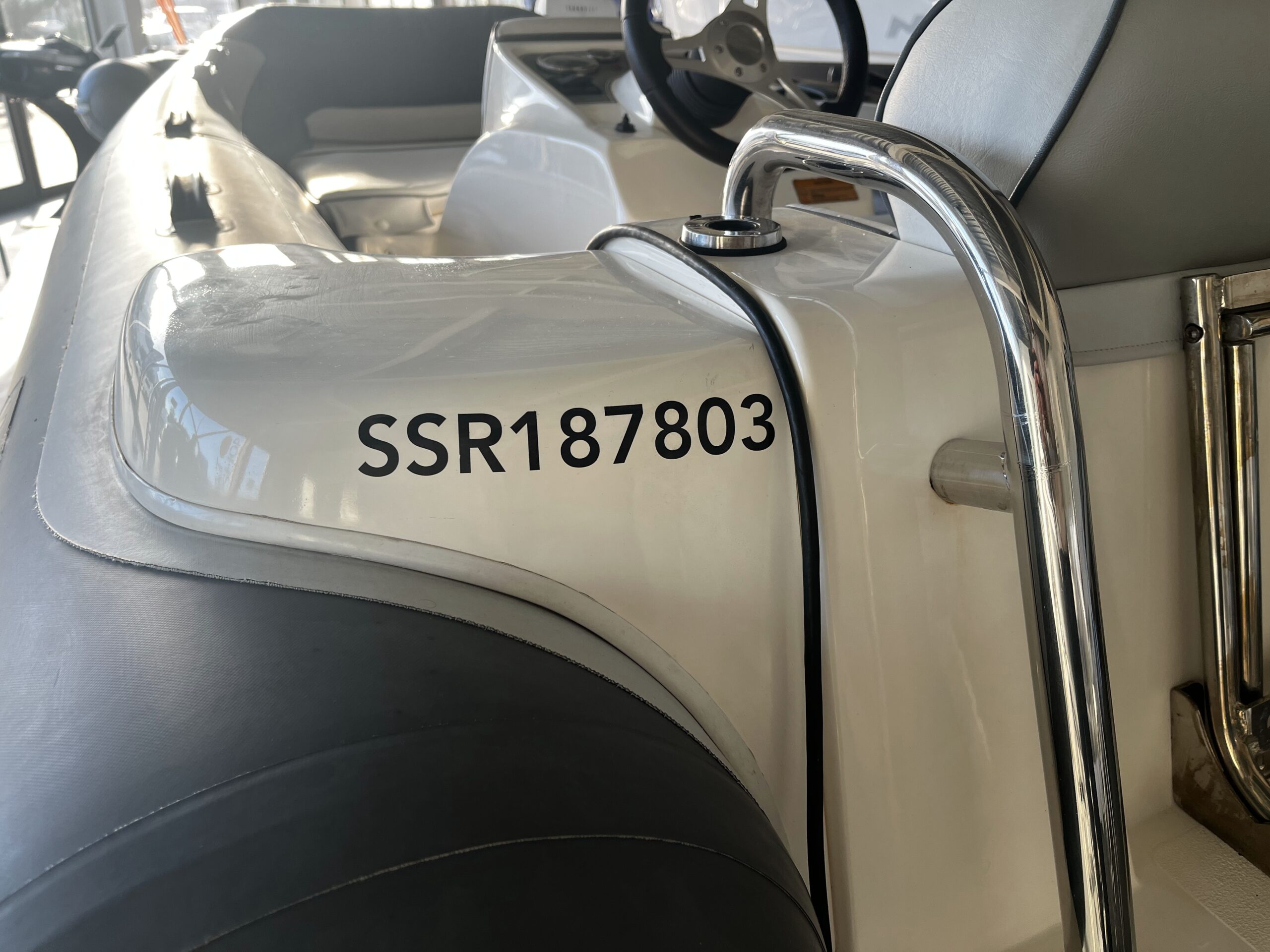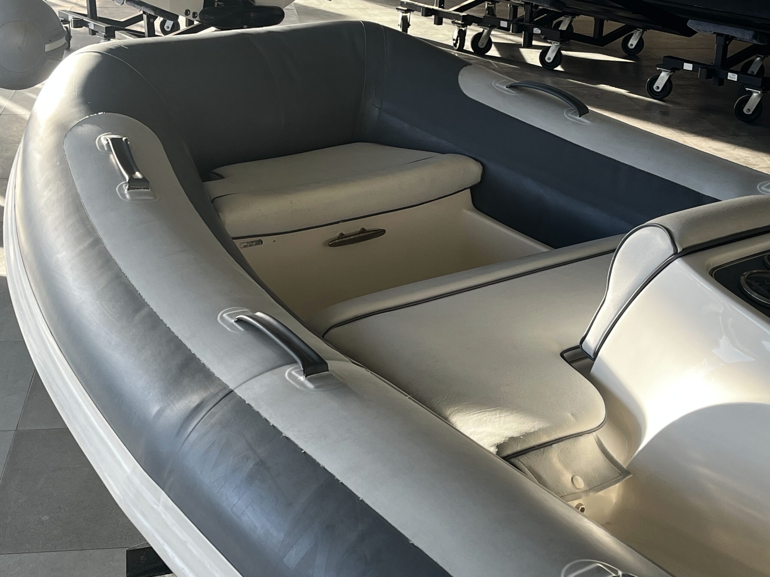 - Hand-made inflatable tube in white/grey with rubbing strake and grab handles
